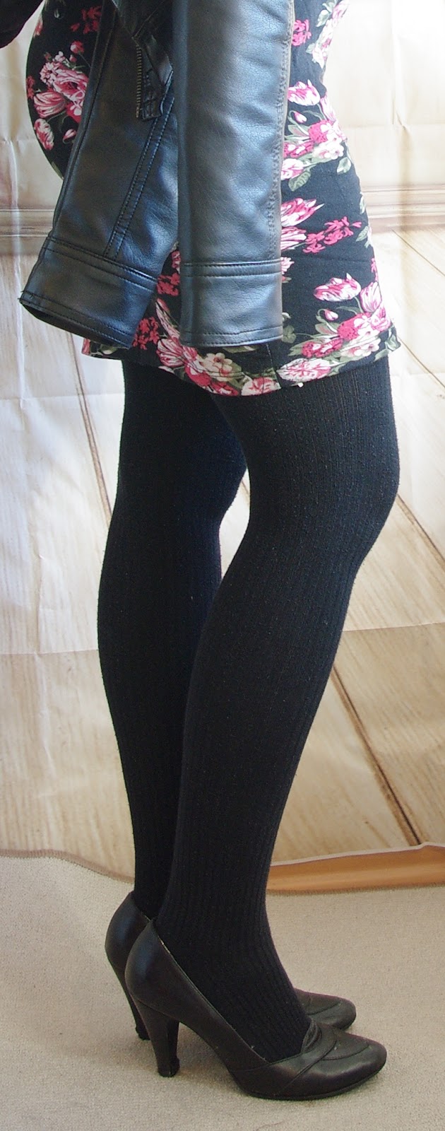 Dazu habe ich eine dickere schwarze Strumpfhose angezogen und schwarze Pumps.